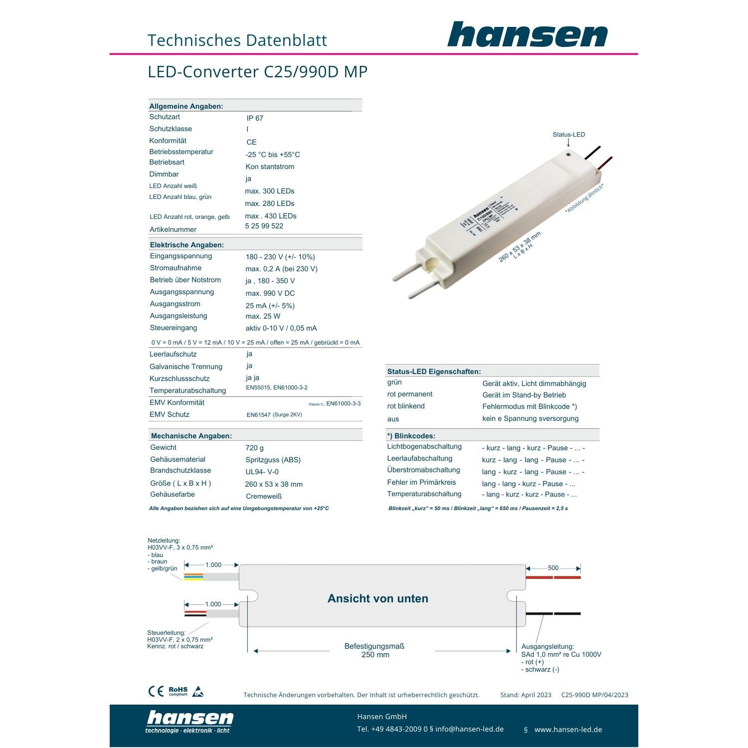 Hansen- Led- Converter -C25/990D- AC 230V -DC 315V- 52599101