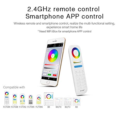 RGB+CCT Farbwechsel (16 Millionen Farben), Helligkeit & Sättigung einstellbar.Farbtemperatur : 2700K-6500KAuto-Transmitter Funktion: Ein Gerät sendet das Signal zum Nächsten, was die Reichweite praktisch endlos macht.Per Smartphone APP „Mi.light WiFi iBox“ fernbedienbarSpannung: 230Vac. Leistung: 6W.Lichtausbeute: 80lm/wAbstrahlwinkel: 120 GradCRI:>80IP54 WasserdichtKompatibel mit folgenden Mi.Light RGB CCT Fernbedienung: B3/T3, B4/T4, B8,FUT089,FUT092,FUT095,FUT096